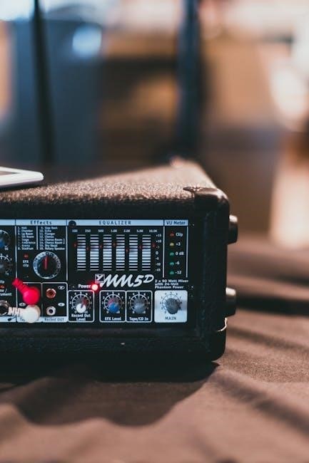 Power consumption is relatively low‚ making it suitable for field and studio environments․ The unit is equipped with a standard IEC power connector for easy integration with power distribution systems․ Always ensure the power supply meets the specified requirements to prevent damage or malfunction․ Using an incorrect power source could void the warranty and compromise the mixer’s performance․