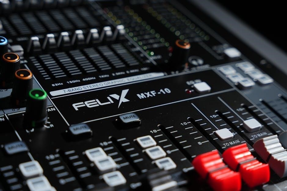 Avoid clipping – indicated by the meters hitting the red zone – as this introduces distortion․ Utilize the gain control to achieve a strong‚ clean signal without exceeding the maximum input level․ Experimentation is key to finding the ideal gain setting for each source‚ ensuring a balanced and professional sound․ Remember to adjust gain individually for each channel to achieve a cohesive mix․